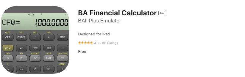 - Search: “BA II Plus”, “BA Financial Calculator”, “HP 12C”